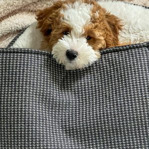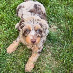 Raised in a caring environment, she is well-socialized and comfortable around people. With her low-shedding coat and loving personality, she’s ideal for anyone looking for a devoted and playful addition to their home.