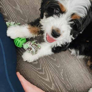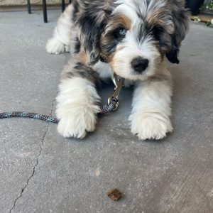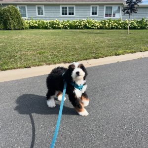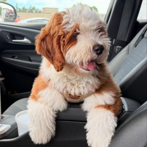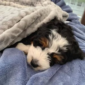 As a mini Bernedoodle, she is expected to stay compact in size while offering a loving, loyal, and intelligent personality. She has a gentle and affectionate nature, making her an ideal companion for families, couples, or individuals looking for a devoted best friend.